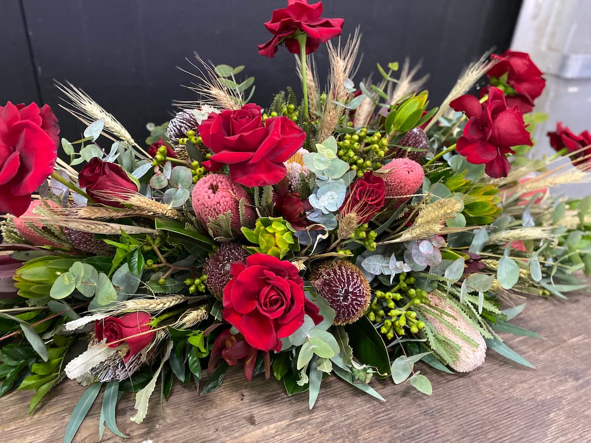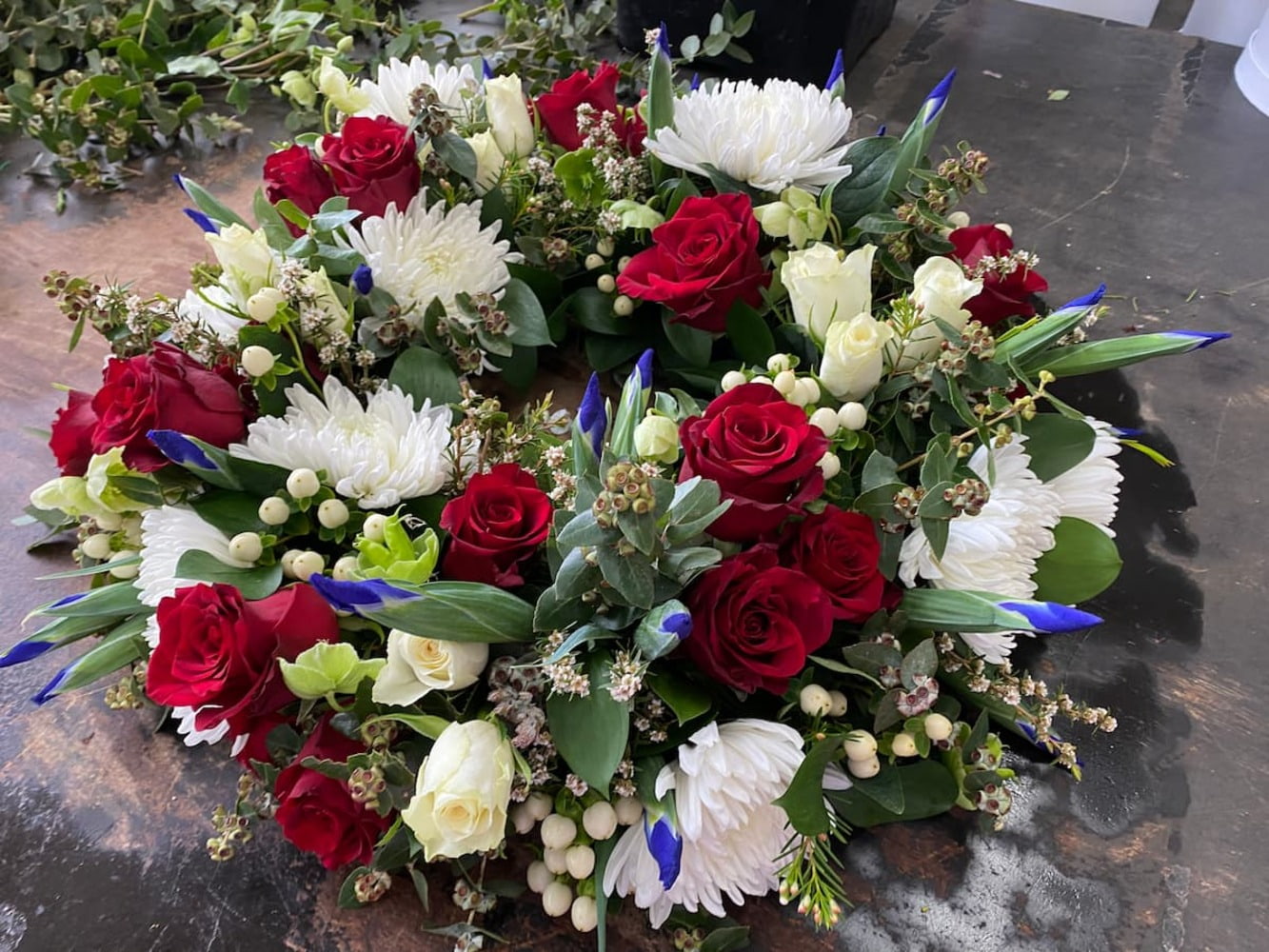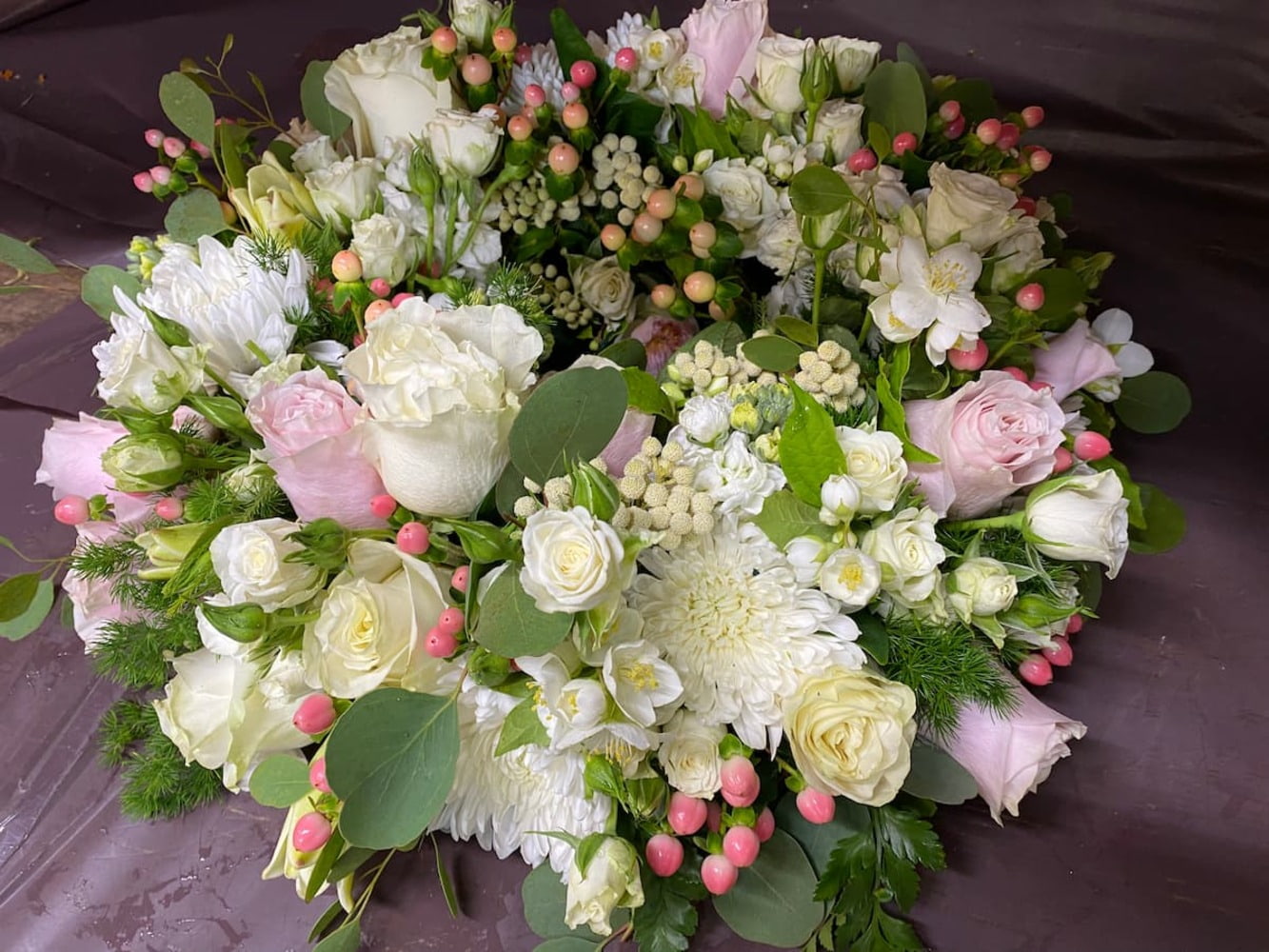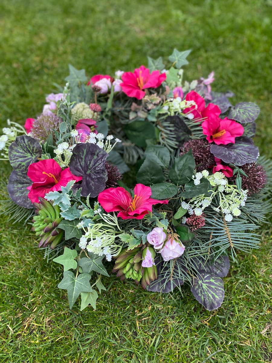 Zrobione z żywych lub sztucznych kwiatów, w zależności od życzeń klienta i pory roku. Cena w zależności od rodzaju i wielkości kompozycji aranżacje na trumnę od 500 zł.