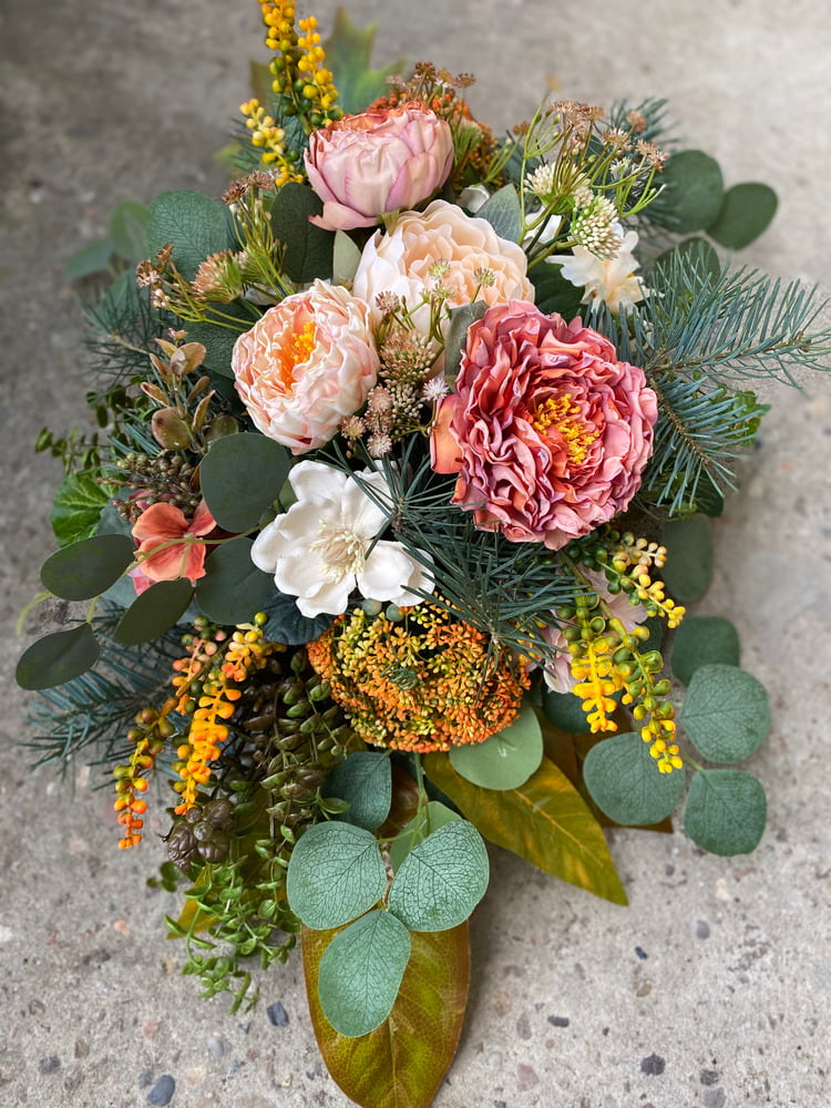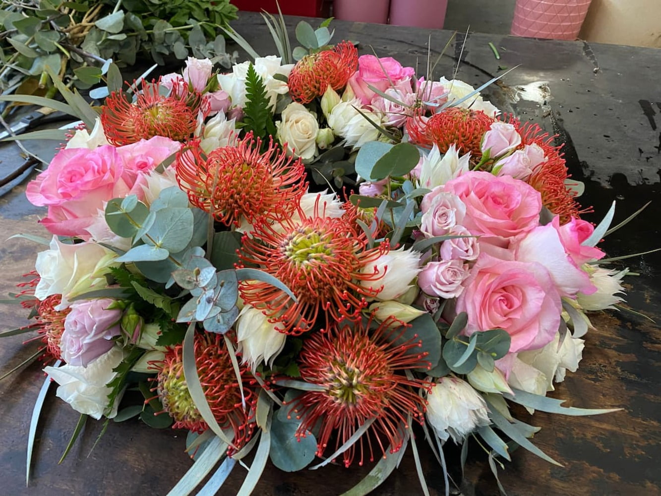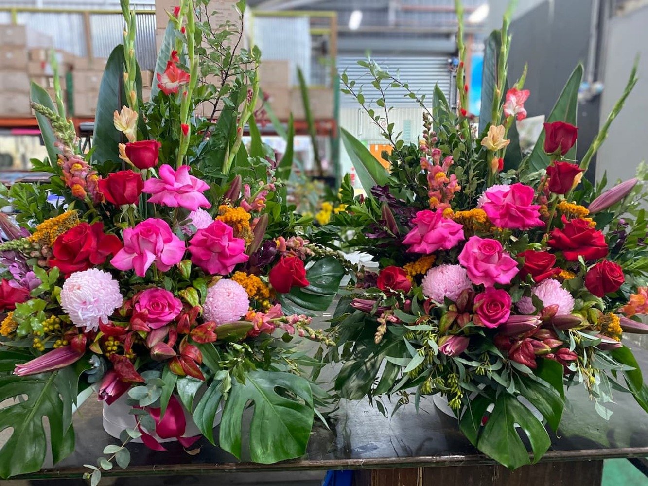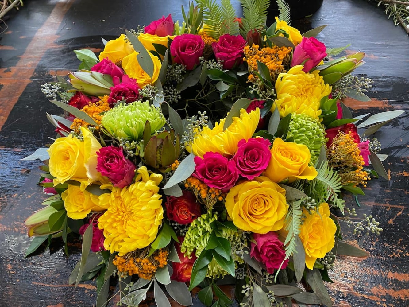 Zrobione z żywych lub sztucznych kwiatów, w zależności od życzeń klienta i pory roku. Cena w zależności od rodzaju i wielkości kompozycji aranżacje na trumnę od 500 zł.